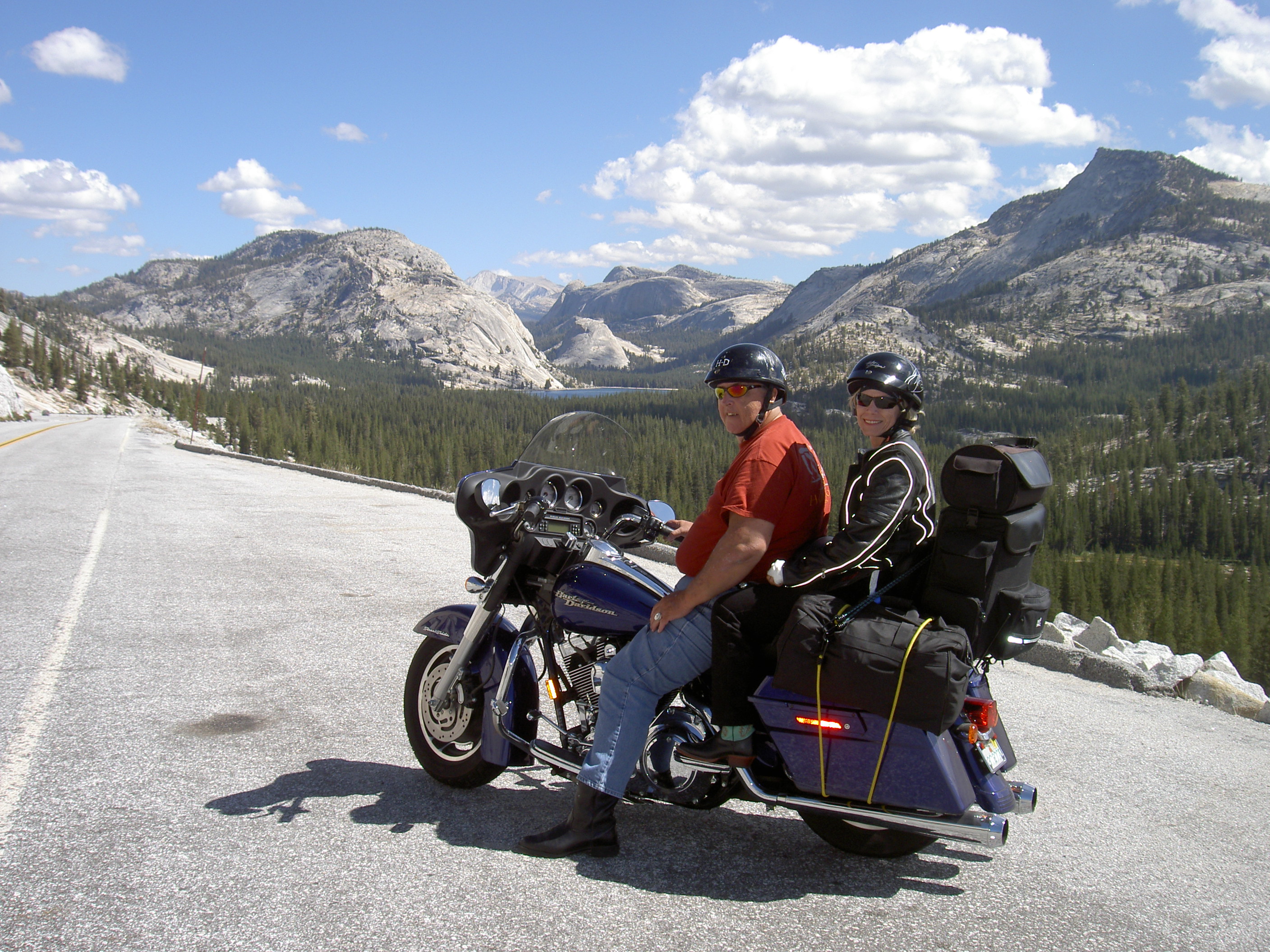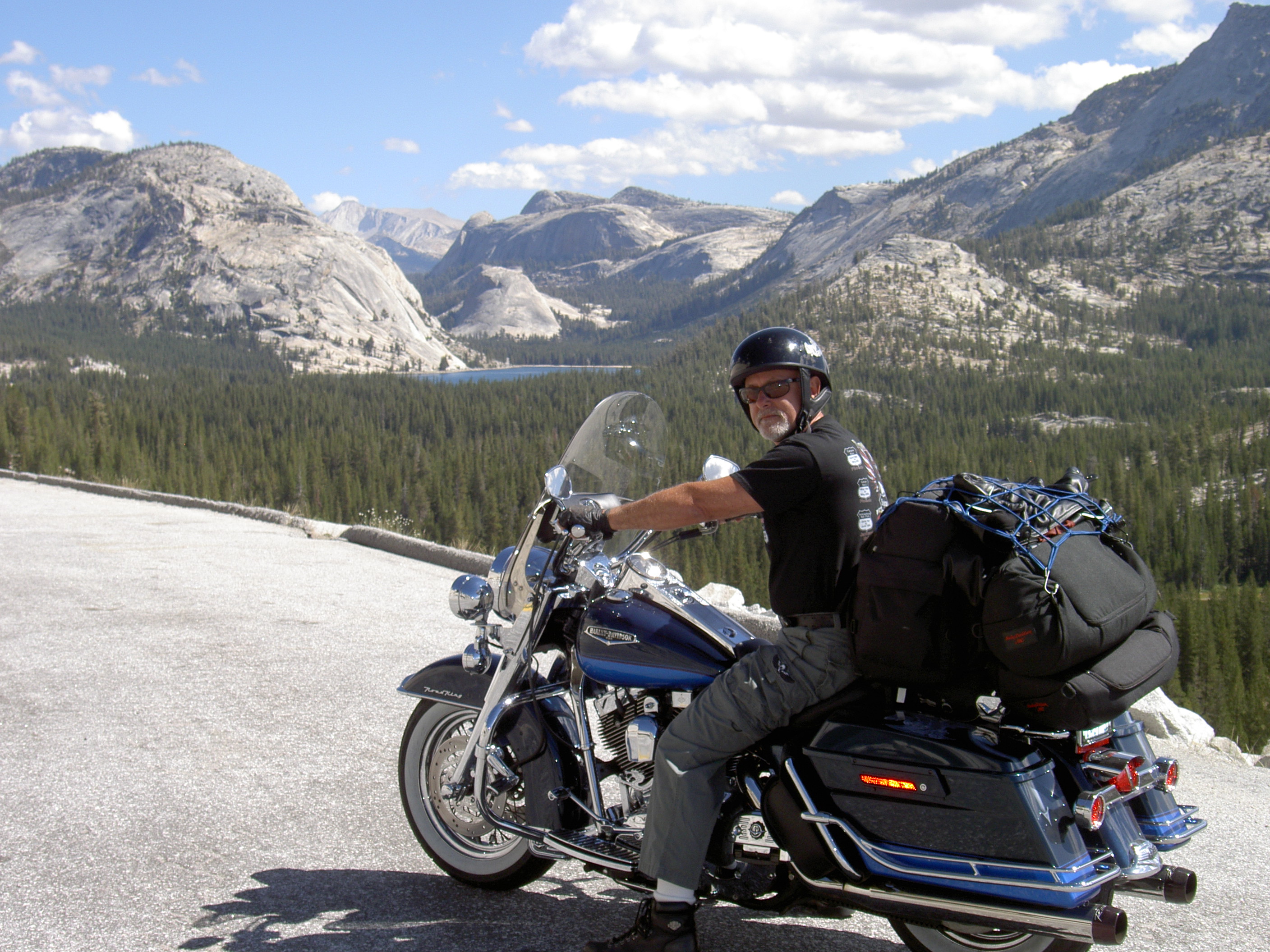 Thusday Today we will ride about 100 miles on the interstate, then back on to the back roads and stay at South Lake Tahoe................................................... Friday... You will ride the Sierria Nevada Mountain Range south to Yosemite_National_Park .................................................................................................. Saturday... into and visit more of Yosemite_National_Park over the pass and back to Reno for our last night and load bike for the return trip home.................. Sunday Return Home